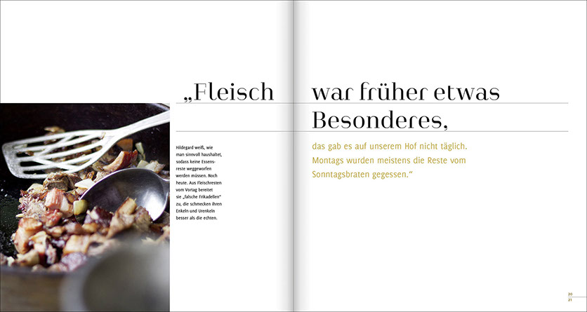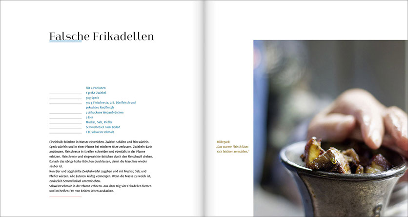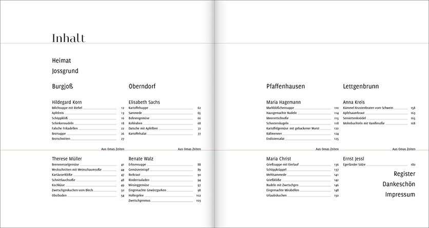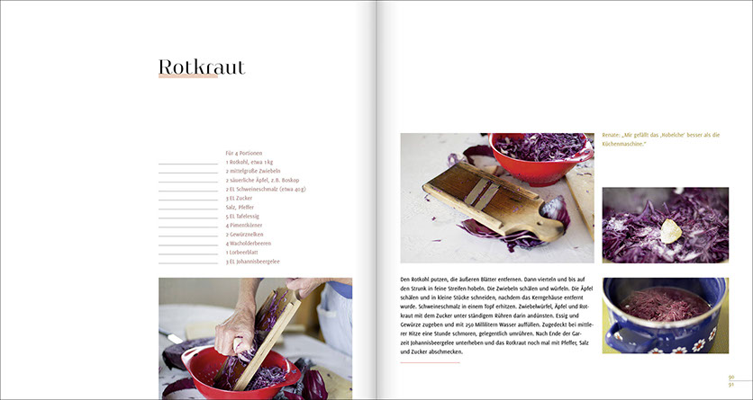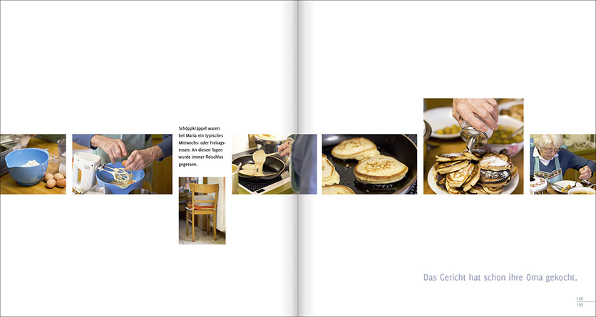 Wir waren über mehrere Monate zu Gast in verschiedenen Küchen unserer Heimat und standen dort mit Maria, Hildegard, Anni, Therese, Renate, Elisabeth und Ernst am Herd. Sie haben extra für uns ihre besonderen traditionellen Familiengerichte gekocht. Wir haben ihnen dabei über die Schulter geschaut, nachgewogen, mitgeschrieben und am Ende immer sehr lecker gegessen.